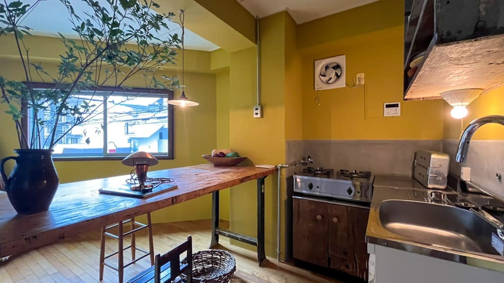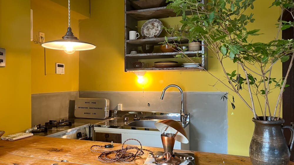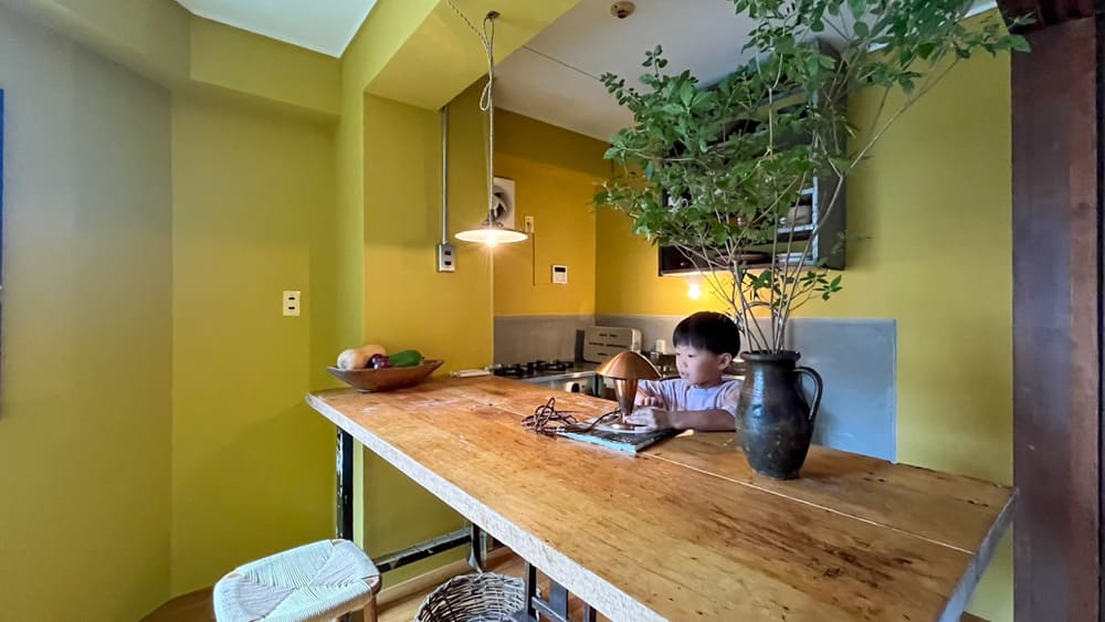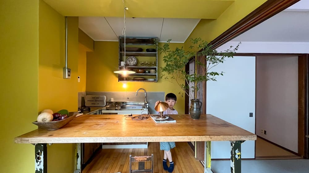 こちらは淡路島の料理人の方がデザインした、「料理が楽しくなるおうち」です。キッチンの色味がポップでどこか昭和の香りがするこの部屋は、令和の今になって新鮮な空間へと回帰しています。コンクリートの無機質な空間もいいですが、こんな和の空間も温かみがあっていいですね。