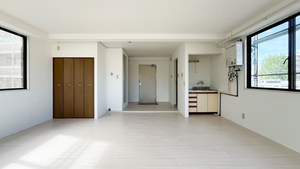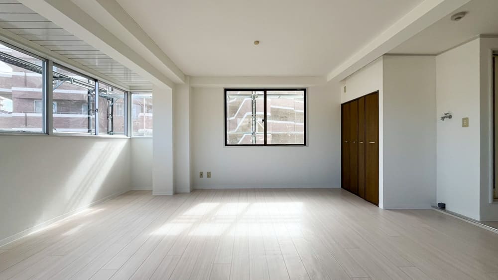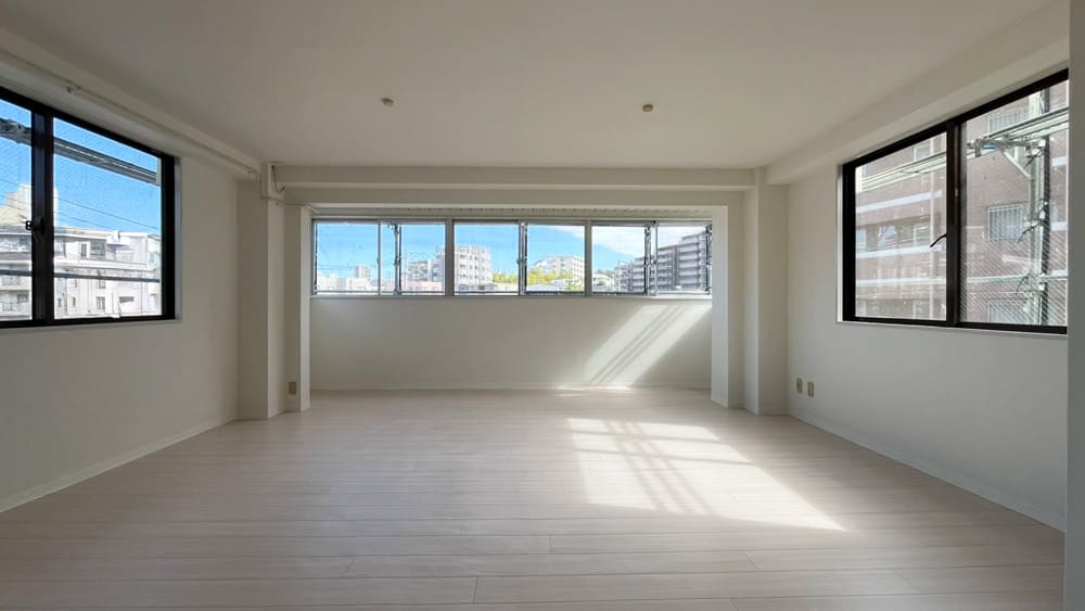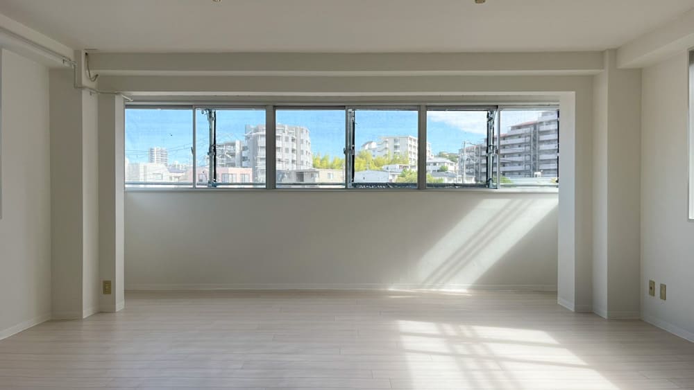 室内は窓に囲まれており明るく、陽もいい感じで差し込んでくるシンプルな空間。一見普通に見えますが、探してみると案外見つからないのが「窓が多くて明るい部屋」という条件の部屋です。マッチングアプリで「清潔感があって真面目な男性」を探すときと同じ難易度と思っていただければ幸いです。