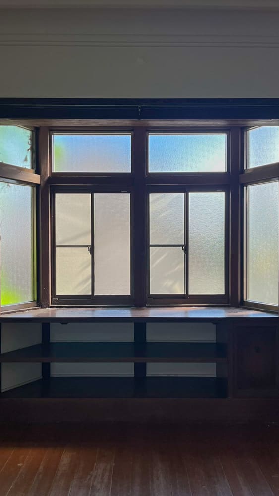 玄関は土間が広く和の雰囲気でしたが、メインの部屋はレトロな洋館に来たかのような空間。スタジオアリスでこんな部屋ありそうですね。映画のワンシーンで出てきそうな出窓も◎