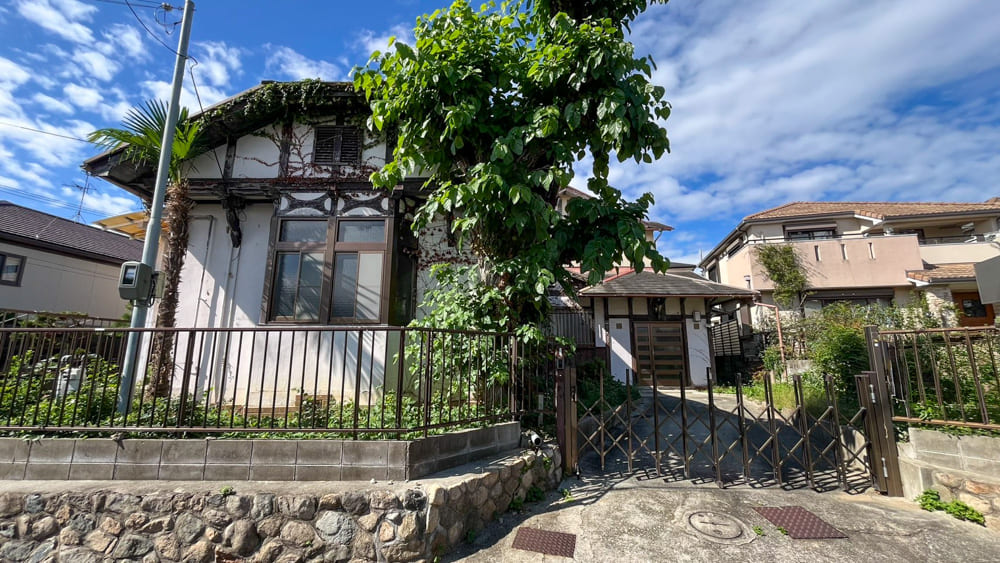 先日こちらの箕面の戸建を見に行ってインスタのストーリーにアップしたところ、すぐさま数多くの反響をいただきました。ツタに覆われて明らかに異質な雰囲気を纏っており、見る人の興味を引くのも頷けますね。
