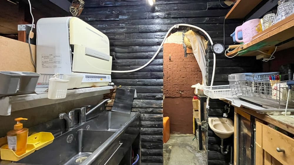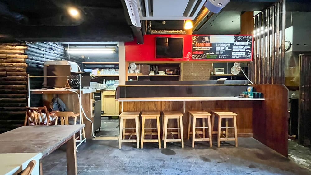 そして店内ですが、間違えて定休日に来てしまったのかと思うほど設備が揃っています。カウンター、台下冷蔵庫、エアコン、椅子やテーブルなど、性能保証はありませんがこれら全て残置物として利用可能。しかも無償で。