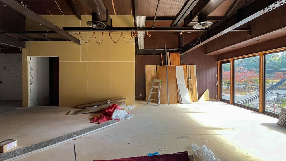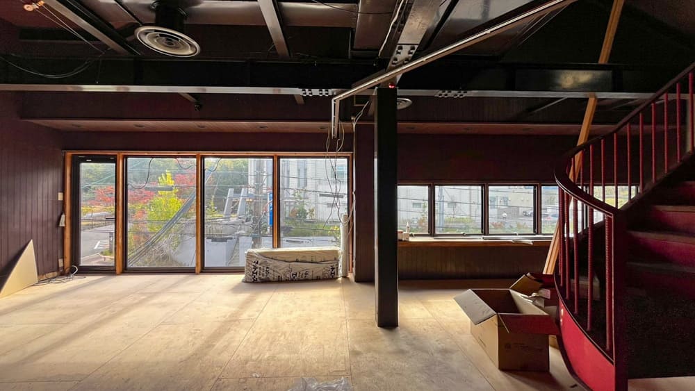 スタジオとして利用するなら、壁の色味がダーク系なので白っぽく塗装する必要があります。ただ壁の面積がまぁまぁ大きいので、工事はそれなりの時間とお金がかかりそうな気配です。