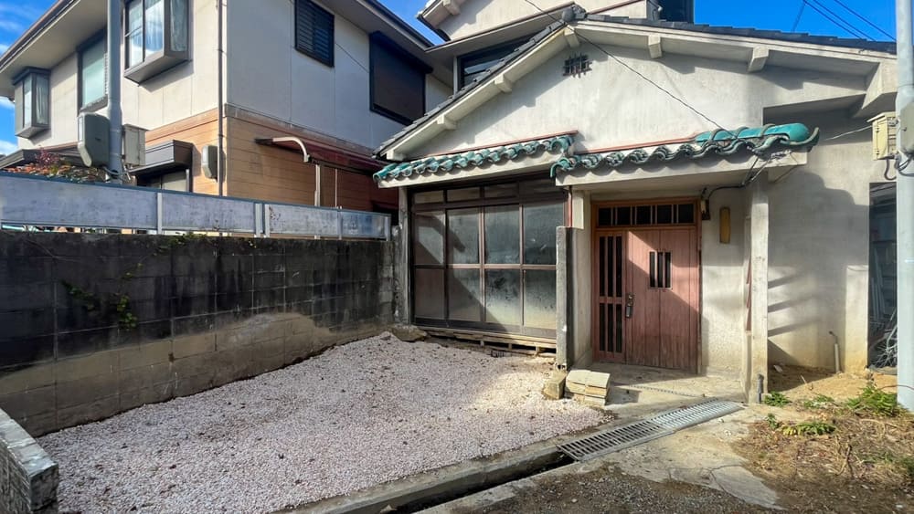 今回は豊中市本町二丁目。阪急豊中駅から徒歩6分ほどの場所で、戸建が密集している住宅地です。そしてこの道の先に物件があるとのことですが、足元の状態的に明らかに私道。もちろん車は通れませんし、そもそもお店を始めたとしてお客さんがちゃんと見つけてくれるのか心配です。