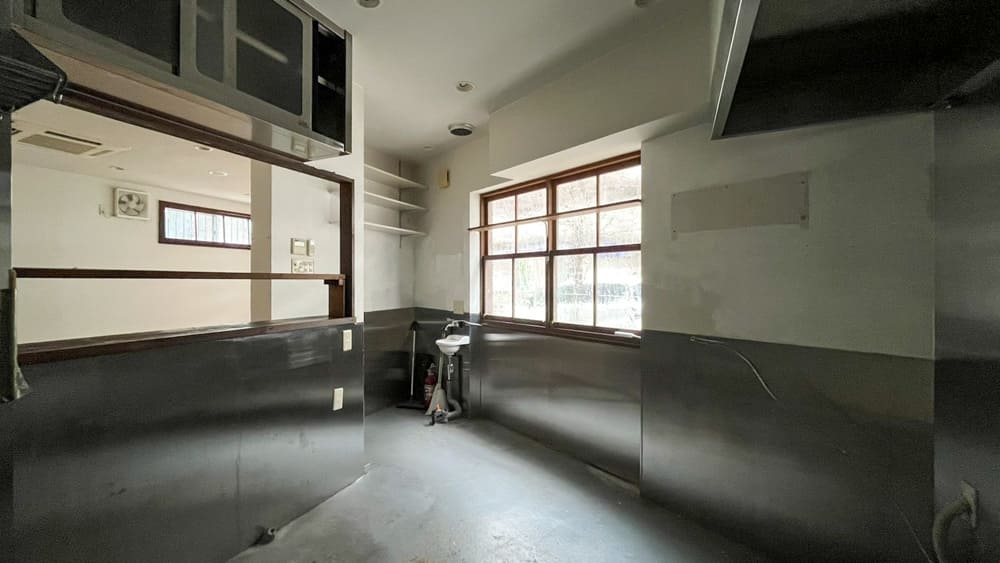 店内は家具や設備は撤去されているものの、イタリアンの雰囲気を残したままの状態です。なので逆に言えば、家具や設備を入れるだけでイタリアンのお店が完成します。店内の改装なども必要無さそうなので、開業初期費用が抑えられるのがポイントです。