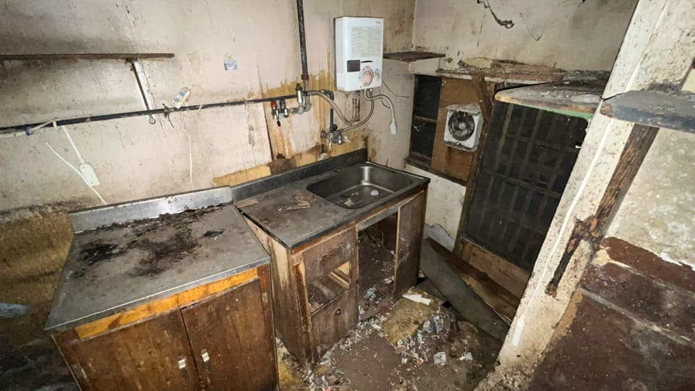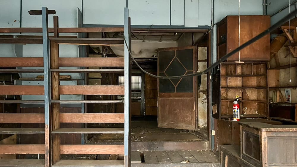 すごいですよね。まぁまぁのボヤでもあったのかというくらいボロボロ。おそらく戦後そのままです。
