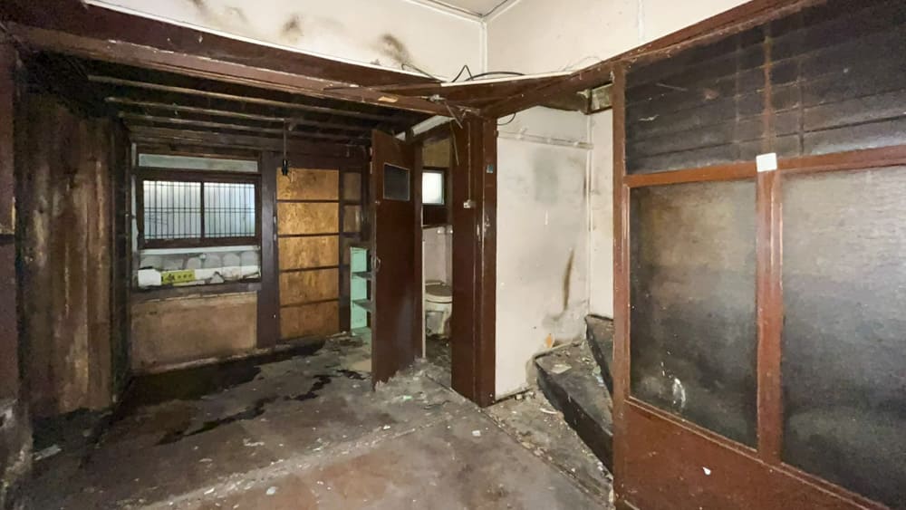 すごいですよね。まぁまぁのボヤでもあったのかというくらいボロボロ。おそらく戦後そのままです。