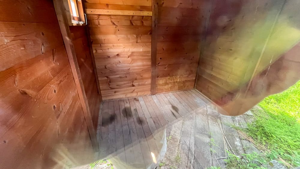 そして小屋ですが2棟建っており、残念ながらどちらも室内へ入ることができませんでした。しかし、私のジャーナリズムにより窓からその雰囲気を撮影することに成功しましたのでご参考ください。こちらは恐らく物置的な小屋。